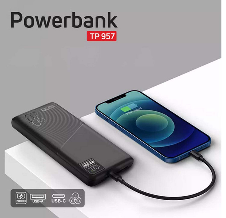 پاوربانک تسکو TP 957 از نظر فنی نیز یک گزینهی قدرتمند برای شارژ سریع و ایمن دستگاههای الکترونیکی محسوب میشود.دارای سه خروجی شامل یک پورت Type-C و دو پورت USB-A است.این تنوع باعث میشود که کاربران بتوانند همزمان سه دستگاه مختلف را شارژ کنند، بدون اینکه نیاز به حمل چندین شارژر داشته باشند. پورتهای USB-A این پاوربانک با حداکثر توان 22.5 وات، میتوانند گوشیهای هوشمند، تبلتها و سایر دستگاههای سازگار را با سرعت بالا شارژ کنند. خروجی Type-C این پاوربانک نیز میتواند با حداکثر توان 20 وات، گوشیهای جدید، تبلتها و حتی برخی لپتاپهای کوچک را شارژ کند. یکی از مزیتهای مهم TP 957 این است که برای شارژ خود دستگاه، دو ورودی MicroUSB و Type-C در نظر گرفته شده است. این طراحی به کاربران این امکان را میدهد که بر اساس کابل و شارژری که در دسترس دارند، یکی از این دو ورودی را برای شارژ پاوربانک انتخاب کنند.