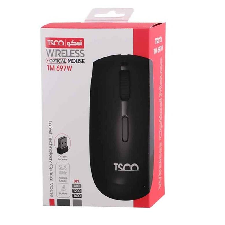 نوع اتصال: بی سیم وزن: 59 گرم ابعاد: 108*60*300 میلیمتر تعداد کلید: 4 عدد نوع رابط: دانگل USB برد ماوس: 10 متر متر نوع حسگر: اپتیکال دقت ماوس: 800/1200/1600 DPI تعداد حالات DPI: سه حالت نوع و سایز باتری: باتری قلمی (سایز AA) تعداد باتری: 1 عدد سازگار با تمامی سیستم عاملها قابلیت کارکردن با هر دو دست دارای طراحی ارگونومیک عملکرد بیصدا (Silent) دارای دکمه تغییر میزان دقت (DPI)