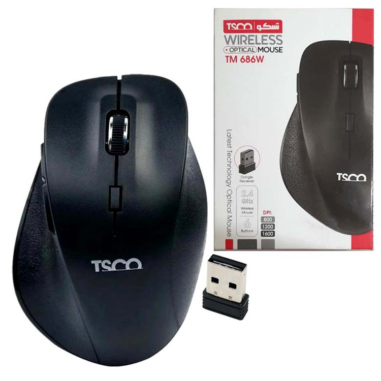 ماوسهای بیسیم بهسرعت جای خود را در میان کاربران محکم کردند و طرفداران بسیاری دارند. بهره بردن از چنین ماوسهایی سبب شده تا کاربر به نسبت ماوسهای باسیم، دامنه حرکتی بهتری داشته باشد و از فاصله دورتری کنترل کامپیوتر یا لپتاپ خود در دست بگیرید. ماوس بیسیم TM686w شرکت تسکو هم یکی از محصولات بسیار باکیفیت و با ارزش خرید بالای این شرکت است. سوای چهار دکمه اصلی، دو دکمه در قسمت کناری بهعنوان دکمههای میانبر در نظر گرفته شده است که کار کردن با این ماوس را به مراتب راحتتر کرده است. دو باتری از نوع Alkaline وظیفه تامین انرژی این ماوس بیسیم را بر عهده دارند. دکمه DPI در قسمت بالای این ماوس امکان تغییر حساسیت را برای کاربر فراهم کرده است
