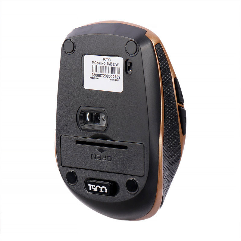 ماوس TM 667W تسکو طراحی جذاب و متفاوتی دارد.رنگ طلایی در مدل ترکیبی بهخصوص در حاشیههای ماوس استفاده شده که به آن ظاهری زیبا و شیک میبخشد.طراحی سطح رویی این ماوس از جنس پلاستیک مات بوده که باعث میشود انگشتان دست بهراحتی روی آن قرار بگیرد و سرعت عملکرد کاربر در هنگام کار با ماوس افزایش یابد.ماوس تسکو مدل TM 667W با یک دانگل به سیستم شما متصل میشود و ده متر برد اتصال دارد.این موس به جز سه دکمه اصلی اغلب ماوسها، سه دکمه دیگر هم دارد.این قابلیتها بهویژه برای افرادی که به جابهجایی سریع بین صفحات مرورگر نیاز دارند، بسیار کارآمد است و تجربهای راحت و کارآمد را به کاربر ارائه میدهد.علاوه بر اینها یک دکمه روشن و خاموش زیر این ماوس قرار دارد که میتوانید با کمک آن، موس را خاموش و روشن کنید.وجود این دکمه به صرفهجویی در مصرف باتری کمک میکند و باعث میشود که ماوس تنها در زمان نیاز روشن باشد.این موس از یک باتری AA تغذیه میکند