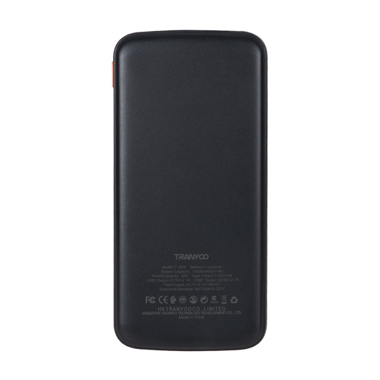 پاور بانک 10000 ترانیو مدل T-D08 به همراه یک عدد کابل شارژ 25 سانتی متری است که با داشتن دوپورت خروجی USB و پشتیبانی از انواع پروتکلهای شارژ سریع، بهترین همراه شما در خارج از منزل، محل کار و یا هنگام سفر خواهد بود. این محصول با استفاده از سیستم شارژ هوشمند به راحتی میتواند دو دستگاه را بهطور همزمان شارژ کند. ضمن این که این محصول هوشمند ورودی مناسب را برای هر دستگاه را در نظر خواهد گرفت. این محصول با ابعاد 150x73 سانتیمتر سبک و قابلحمل است و به راحتی میتوانید انواع دیوایسهای خود مانند گوشیهای هوشمند، دوربین، تبلت و غیره را در طول روز شارژ کنید. پاور بانک همراه ترانیو دارای سیستم محافظت در برابر مشکلاتی مانند نوسانات برق، اتصال کوتاه، تغییرات دما، اضافه جریان در ورودی و خروجی و غیره است. این پاور بانک از پورت خروجی دوگانه USB_A و پورت ورودی دوگانه USB-C برخوردار است. همچنین حداکثر میزان قدرت برای پورت ورودی 5V _2.1A و پورت خروجی آن 5.1V_2.6A است. به علاوه این دستگاه دارای درگاه ورودی TypeC برای شارژ است و قابلیت سازگاری با تمامی گجتهای هوشمند را دارد. در مجموع این پاور بانک با توانایی چندین بار شارژ گوشیهای هوشمند، میتواند یک انتخاب مناسب برای استفاده روزمره باشد.