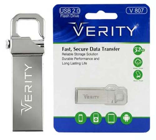بدنه فلزی فلش مموری وریتی مدل V807 ظرفیت 32 گیگابایت در برابر رطوبت، شوک و لرزش مقاومت دارد و اگر در معرض آن ها قرار بگیرد اطلاعات داخل آن آسیب نمیبیند یا از دست نمی رود.فلش 32 گیگ وریتی Verity V 807 با پورت USB 2.0 سازگاری دارد و می تواند تاحداکثر سرعت 480 مگابایت بر ثانیه اطلاعات را انتقال دهد و مناسب برای ذخیره سازی و انتقال اطلاعاتی نظیر موسیقی، فیلم، عکس و … می باشد. این فلش مموری با سیستم عامل های Windows ،macOS ،Linux ،Android سازگاری ذارد. همچنین قابلیت اتصال به جاکلیدی را دارد که باعث حمل آسان آن می شود.