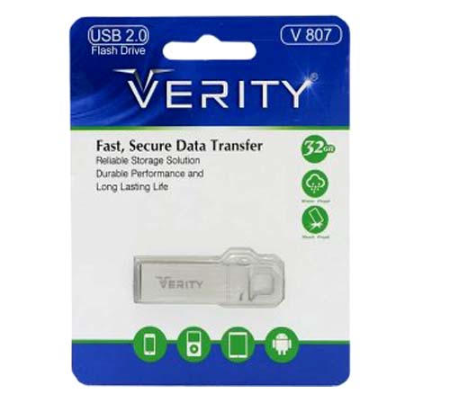 بدنه فلزی فلش مموری وریتی مدل V807 ظرفیت 32 گیگابایت در برابر رطوبت، شوک و لرزش مقاومت دارد و اگر در معرض آن ها قرار بگیرد اطلاعات داخل آن آسیب نمیبیند یا از دست نمی رود.فلش 32 گیگ وریتی Verity V 807 با پورت USB 2.0 سازگاری دارد و می تواند تاحداکثر سرعت 480 مگابایت بر ثانیه اطلاعات را انتقال دهد و مناسب برای ذخیره سازی و انتقال اطلاعاتی نظیر موسیقی، فیلم، عکس و … می باشد. این فلش مموری با سیستم عامل های Windows ،macOS ،Linux ،Android سازگاری ذارد. همچنین قابلیت اتصال به جاکلیدی را دارد که باعث حمل آسان آن می شود.