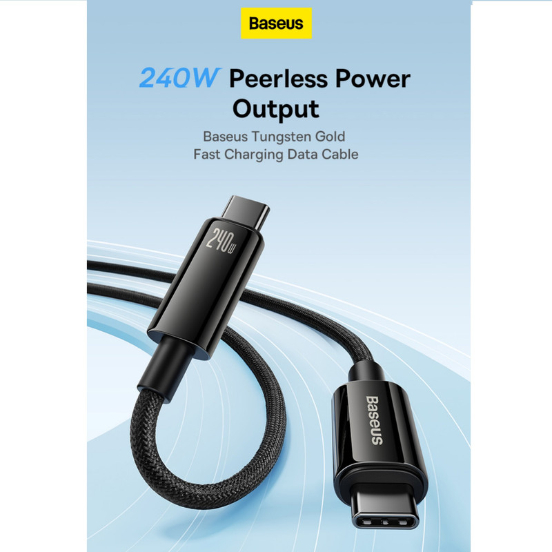 کابل شارژ TYPE-C به TYPE-C باسئوس ( baseus) فست شارژ مدلTUNGSTEN GOLD 240W باگارانتی 24 ماهه آونگ
