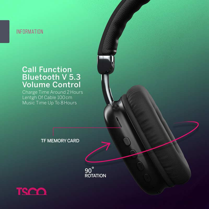 یکی از ابزار بسیار مهم هنگام کار با سیستم کامپیوتری یک هدفون است. معمولاً برای تماشای فیلم، گوش دادن به موسیقی یا انجام بازیهای رایانهای داشتن یک هدفون کارآمد ضروریست. برای کسانی که ساعتها با لپتاپ و سیستمهای شخصی خود کار میکنند هدفون بیسیم و از نوع بلوتوثی که دردسرهای سیم را نداشته باشد انتخاب فوقالعادهای خواهد بود. تسکو یکی از محصولات منحصر به فرد خود را معرفی کرده که از ویژگیهای خوبی برخوردار است. هدفون بلوتوثی مدل TH 5378 با باتری 300 میلیآمپرساعتی و بهرهمندی از بلوتوث نسخه 5.3 کارایی زیادی را در هنگام ساعتها کار ممتتد از خود نشان میدهد. بالشتهای این هدفون هنگام قرارگیری روی گوش احساس خستگی ایجاد نکرده و باعث اذیت شدن آن نمیشود. در ادامه با بررسی هدفون جذاب TH 5378 همراه شما هستیم. هدفون تسکو مدل 5378 علاوه بر حالت بلوتوثی، قابلیت استفاده از SD Card، کابل AUX و رادیو را نیز دارد. یکی از ویژگیهایی که در مورد این هدفون تسکو توجه را جلب میکند سبک طراحی ساده و کاربرپسند این محصول است. تل این هدفون به گونهای طراحی شده تا انعطافپذیری و قابلیت چرخش 90 درجهای داشته باشد و از استحکام بالایی نیز برخوردار است. نسخهای که این هدفون از آن پشتیبانی میکند ورژن 5.3 بوده و به سرعت به بلوتوث متصل خواهید شد. اما در هر لحظه که باتری هدفون شما تمام شود با کابل AUX به راحتی میتوانید کارخود را راه بیندازید. شما تا فاصله 10 متری از سیستم خود قابلیت اتصال به هدفون را داشته و بدون هیچگونه قطعی میتوانید موزیک گوش داده و لذت ببرید. با این هدفون علاوه بر پخش موسیقی و پادکست میتوانید از رادیو نیز استفاده کنید. ظرفیت باتری هدفون بلوتوثی تسکو مدل TH 5378 سیصد میلی آمپر ساعت بوده و برای مدت طولانی میتواند شما را همراهی کند. مدت زمان استفاده از باتری در حالت مکالمه 8 ساعت و زمان شارژ آن نیز 1.5 ساعت است. مدت زمان پخش موسیقی نیز به 8 ساعت میرسد. برای گوش دادن به رادیو و SD Card نیز میتوانید روی 8 ساعت حساب کنید. همچنین امکان استفاده از این محصول در حالت استندبای تا 180 روز وجود دارد. حساسیت اسپیکرهای این هدفون در حدود 115 ± 3db بوده وتفکیک صدا را به خوبی برای شما به ارمغان میآورد. آمپدانس اسپیکر یعنی مقاومت داخلی سیم پیچ اسپیکر و علامت اختصاری آن (Z) است.