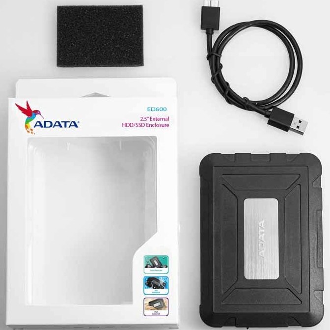 قاب حافظه اکسترنال HDD و SATA 6Gb/s SSD مدل «ED600» محصولی از شرکت «ایدیتا» (ADATA) است که از بدنهای بسیار مقاوم با کیفیت ساخت بالا بهره میبرد. این قاب حافظه اکسترنال شرکت ایدیتا از طریق درگاه سریع USB3.1 به رایانه شما متصل میشود و میتواند اطلاعات موجود روی حافظههای جانبی را با سرعت بالا برای شما انتقال دهد. استانداردی که برای انتقال اطلاعات از طریق درگاه USB3.1 از آن نام برده میشود سرعتی معادل 5 گیگابیت برثانیه است. قاب ED600 شرکت ای دیتا علاوهبر هارددیسکها از حافظههای SSD با رابط SATA 3 هم پشتیبانی میکند. برای استفاده از این قاب حافظه کافی است که هارددیسک 2.5 اینچی با ضخامت حداکثر 9.5 میلیمتری خود را در محل تعبیه شده قرار دهید وبه کمک درگاه USB آن را به رایانه خود متصل کنید. در جعبه این محصول تنها شاهد یک کابل USB و دفترچه راهنما هستیم. به این ترتیب اتصال سریع و آسان حافظههای با رابط SATA به دستگاههای معمول با پورت USB ممکن میشود و میتوانید حافظههای با ظرفیت بالا را خریداری کرده و از این طریق آنها را به هارد اکسترنال تبدیل کنید. حتی میتوان این کار را با حافظههای رایانهها یا لپتاپهای قدیمی و بدون مصرف هم انجام داد.