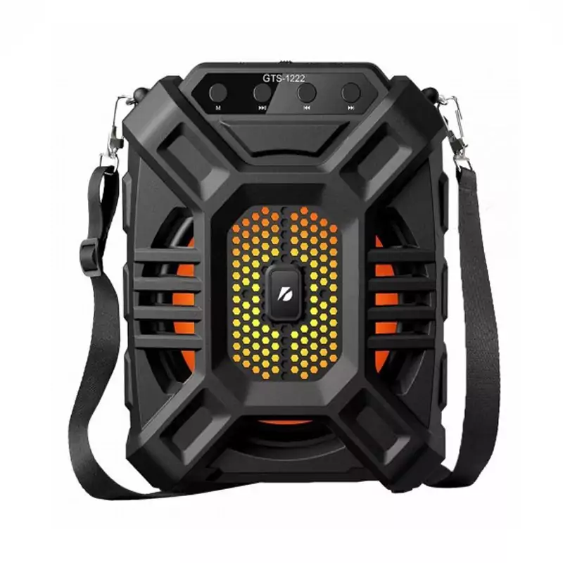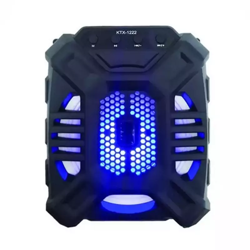 اسپیکر بلوتوثی قابلحمل مدل KTX-1222 محصولی است که با توجه به ساختار، صدای خروجی و البته قیمت، نمیتوان به راحتی از کنار آن گذشت. اسپیکری که سعی دارد تا با توجه به رده اقتصادی خود، لبخند رضایت را روی لب خریداران بنشاند. در بخش ظاهری اسپیکر بلوتوثی قابلحمل مدل KTX-1222 شاهد یک طراحی عام پسند هستیم به این معنی که قطعاً کاربران خاص نگاهی متفاوت به محصولات دارند. پشت بدنه اسپیکر هم حفرهای قرار گرفته تا دستگیرهای باشد برای حمل آسان تر بدون بند. در مجموع طراحی این اسپیکر قابل قبول است اما با توجه به سطح بودجهای که برای آن در نظر گرفته شده است، نباید در بخش متریال استفاده شده انتظار زیادی از آن داشت. در جعبه این اسپیکر بجز، خود محصول شاهد میکروفن، کابل شارژ و بند حمل هستیم.