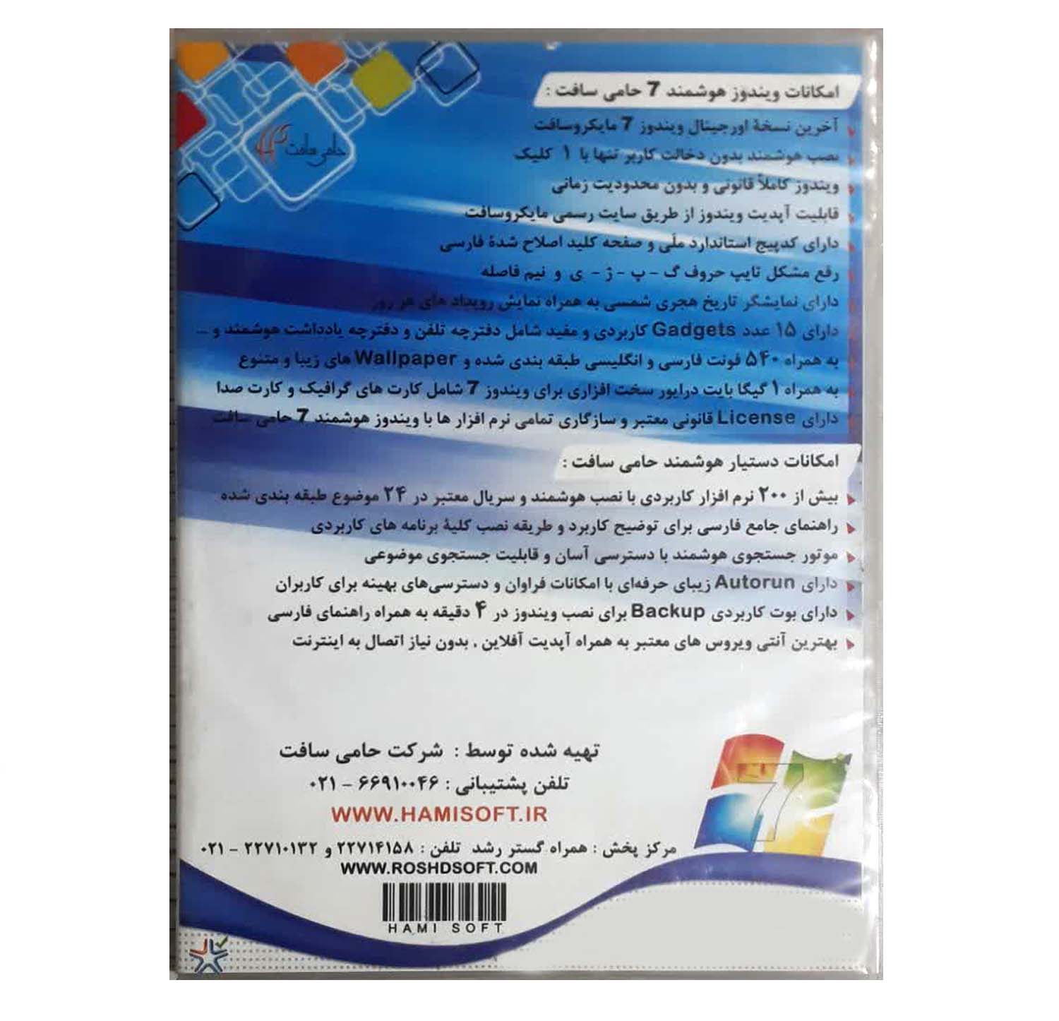 نصب هوشمند آخرین ویندوز 7 اورجینال مایکروسافت.بیش از 200 نرم افزار کاربردی بانصب هوشمند و سریال معتبر .License قانونی معتبر و قابلیت Update شدن ویندوز. جامع ترین راهنمای فارسی برای کلیه نرم افزاری های کاربردی .موتور جست و جوی هوشمند با امکان دسترسی سریع و آسان.