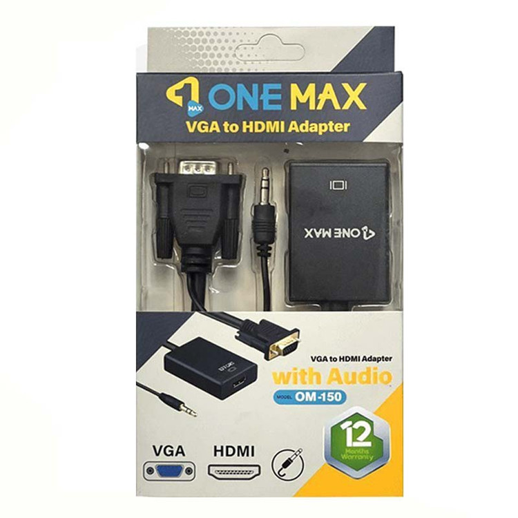 تبدیل VGA به HDMI وان مکس مدل OM-150 همراه با کابل صدا و Microusb مدل OM-150 یک مبدل بسیار کارآمد.طول 20 سانتی متر است که با استفاده از آن می توانید تصاویر فیلم یا بازی که میخواهید را از کامپیوتر یا لپتاپ. با رابط VGA بر روی نمایشگر مورد نظر با رابط HDMI مانند پروژکتور تلویزیون و… ببینید. تبدیل VGA به HDMI برند وان مکس (ONE MAX) دارای ورودی VGA و جک 3.5 میلیمتری (AUX) و خروجی HDMI است.برای اتصال لوازم قدیمی نیز به لب تاپ ها، کامپیوتر ها و تلوزیون های جدید بسیار کاربرد دارد. این تبدیل از رزولیشن 1920P و 1080P پشتیبانی می کند و بهترین کیفیت تصویر و صدا رو به شما ارائه میدهد.این محصول همراه با یک کابل برای تامین برق و یک کابل برای انتقال صدا عرضه می شود. نصب ساده و بدون نیاز به درایور طراحی کوچیک و جابه جایی راحت از ویژگی های این محصول است.
