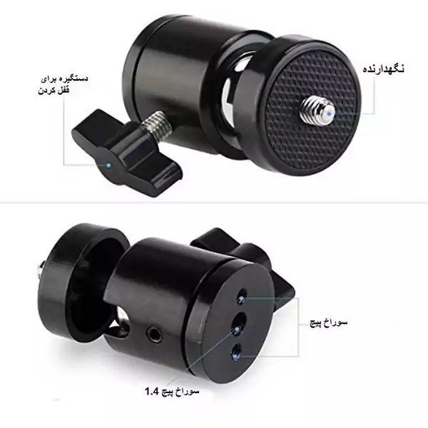 - صفحه زیرین دارای فضا پیچ 1/4 اینچی که استفاده مستقیم بر روی سه پایه