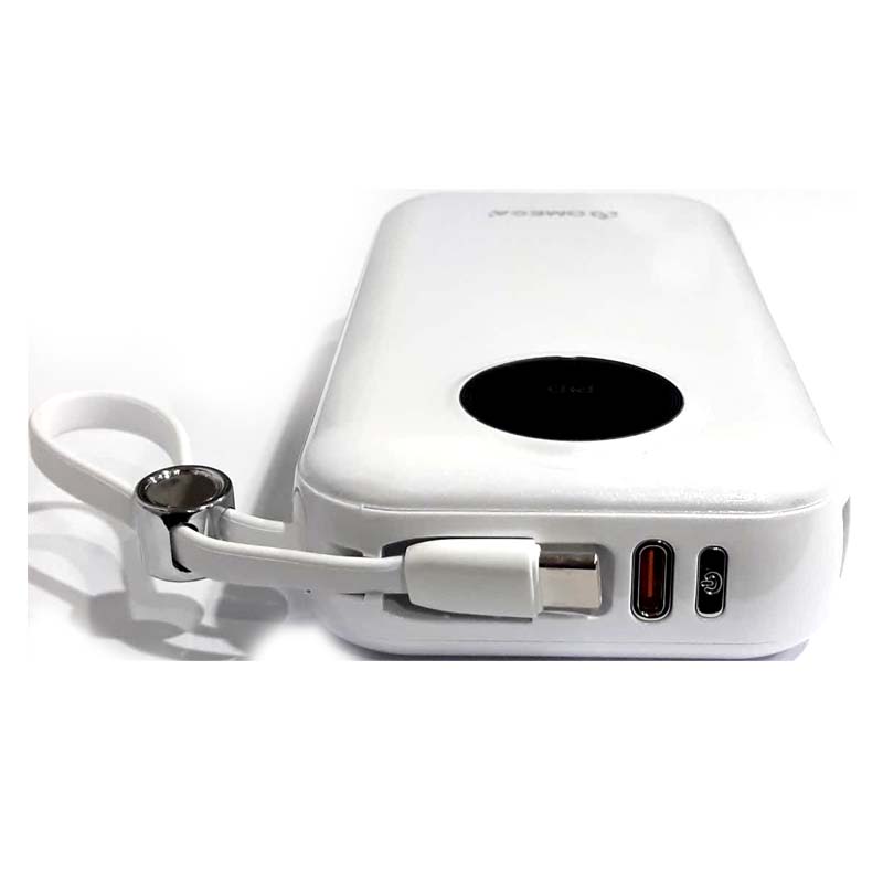پاوربانک امگا PB2005 از نظر فنی نیز یک گزینهی قدرتمند برای شارژ سریع و ایمن دستگاههای الکترونیکی محسوب میشود.دارای دو خروجی کابلی Type C و Lightnning و یک عدد خروجی USB است.این تنوع باعث میشود که کاربران بتوانند همزمان سه دستگاه مختلف را شارژ کنند، بدون اینکه نیاز به حمل چندین شارژر داشته باشند. پورتهای این پاوربانک با حداکثر توان 22.5 وات، میتوانند گوشیهای هوشمند، تبلتها و سایر دستگاههای سازگار را با سرعت بالا شارژ کنند.با خروجی Type C آن میتوانید گوشیهای جدید، تبلتها و حتی برخی لپتاپهای کوچک را شارژ کنید. یکی از مزیتهای این دستگاه صفحه نمایش آن است که میزان شارژ پاوربانک را نشان می دهد.