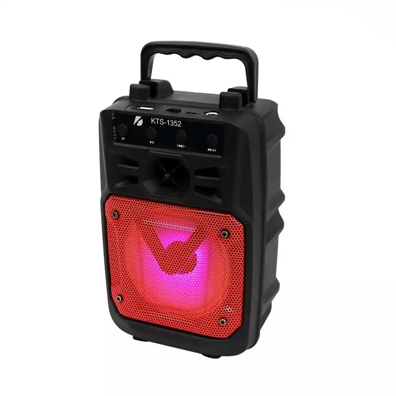 یک اسپیکر قابل حمل با پشتیبانی از رم،فلش،بلوتوث،رادیو و دارای ورودی میکروفن و قابلیت کارائوکه می باشد. رقص نور رنگارنگ چشمگیر و استند نگه داری گوشی موبایل نیز دارد.شما با 2 ساعت شارژ کردن اسپیکر میتوانید تا 4 ساعت به موسیقی مورد علاقه خود گوش فرا دهید.