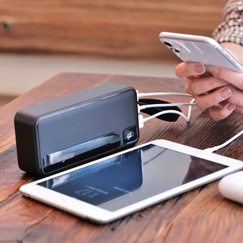 دارای 12 ماه گارانتی شرکت متین ابعاد:42.4 × 69 × 147.5 میلی متر وزن :585 گرم جنس ساخت :پلاستیک (ABS) محدوده ظرفیت پاور بانک :15000 به بالا ظرفیت باتری پاور بانک (اسمی) :30000 میلی آمپر ساعت نوع پورت های ورودی (شارژ شدن) :Type C تعداد پورت ورودی (شارژ شدن) :1 عدد نوع پورت های خروجی (شارژ کردن دستگاه های دیگر) :Type C, USB تعداد پورت خروجی (شارژ کردن دستگاه های دیگر) :3 عدد شدت جریان ورودی :ورودی Type-C: با 5 ولت 2 آمپر - 9 ولت 2 آمپر شدت جریان خروجی :خروجی یو اس بی: 4.5 ولت 5 آمپر - 5 ولت 4.5 آمپر - 5 ولت 3 آمپر - 9 ولت 2 آمپر - 12 ولت 1.5 آمپر, خروجی یو اس بی سی: 5 ولت 2 آمپر - 9 ولت 2.22 آمپر - 12 ولت 1.5 توان خروجی :22.5 وات تکنولوژی شارژ سریع :PD (Power Delivery) 3.0 امکان شارژ همزمان :3 دستگاه نوع باتری :قابل شارژ لیتیوم پلیمر چراغ نشانگر وضعیت کارکرد :چراغ نشانگر LED اقلام همراه کالا :کابل شارژ - دفترچه راهنما