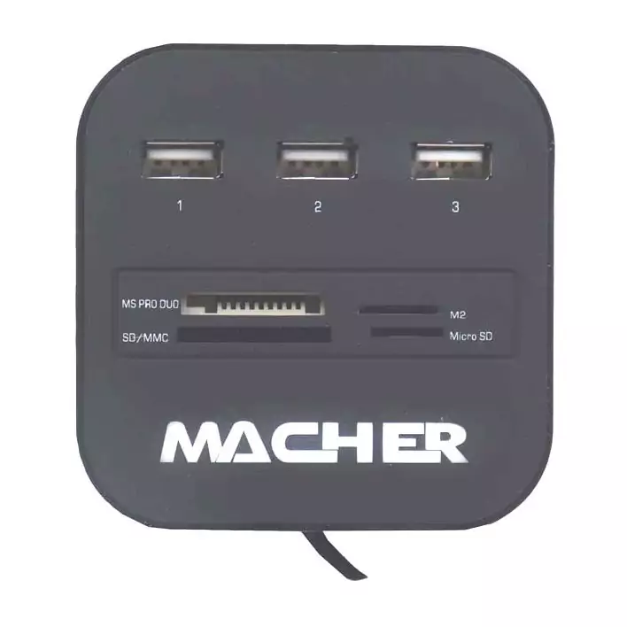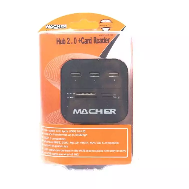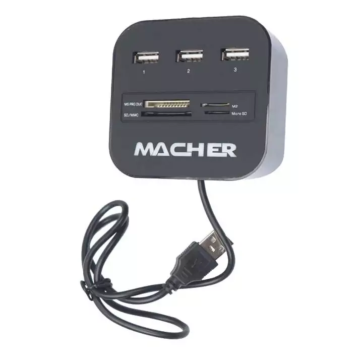 وزن: 120 گرم اتصال: با سیم درگاههای ارتباطی USB 2.0 سرعت انتقال دادهها تا 480 مگابیت بر ثانیه سازگار با تمامی سیستم عاملها تعداد پورت: 3 عدد قابلیت پشتیبانی از کارتهای حافظه: MS PRO DUO، SD/MMC، Micro SD، M2 اتصال Plug and Play: دارد