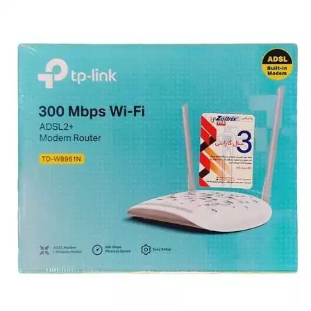 تیپی-لینک TD-W8961N یک مودمروتر +ADSL2 است که از 4 عدد پورت شبکه (RJ-45) برای اتصال بهصورت باسیم، دو عدد آنتن برای اتصال بیسیم و یک عدد پورت RJ-11 برای اتصال خط تلفن بهره میبرد. این محصول، ترکیبی از عملکردهای یک مودم +ADSl2 با سرعت بالا، یک روتر بیسیم و یک اکسس پوینت بیسیم است و از نسل سوم استانداردهای بیسیم یعنی سری N هم بهره میبرد. به همین دلیل قادر است حداکثر سرعت 300 مگابیت بر ثانیه را که سرعت خوبی است، برای برقراری ارتباط بیسیم به شما ارائه دهد؛ البته این عدد 300 مگابیت بر ثانیه، نشاندهندهی حداکثر سرعت انتقال اطلاعات در شبکهی بیسیم توسط این مودم است و به سرعت اینترنت شما هیچ ارتباطی ندارد. مودم بیسیم TD-W8961N برای کاربری خانگی، یک دفتر کار کوچک با حداکثر 4 کامپیوتر و کارهایی مانند انجام بازیهای آنلاین، مکالمهی اینترنتی و حتی پخش ویدیو HD نیز مناسب است و میتواند قابلیتهای رمزگذاری WPA-PSK و WPA2-PSK را به شما عرضه کند. این محصول از لحاظ شکل ظاهری، پورتها و کلیدها کاملا مثل W8961ND است و تنها تفاوت این محصول این است که آنتنهای W8961N ثابت هستند و از محصول جدا نمیشوند؛ ولی آنتنهای W8961ND قابلیت جداشدن از محصول را هم دارند. برای آشنایی بیشتر با این محصول و مقایسه آن با رقیب اصلیش یعنی دی-لینک 2740U با ما در نقد و بررسی آن همراه باشید.