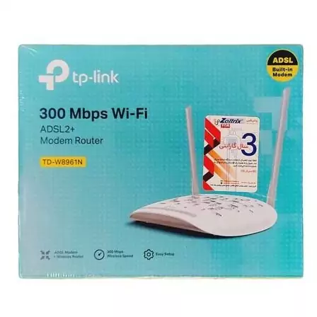 تیپی-لینک TD-W8961N یک مودمروتر +ADSL2 است که از 4 عدد پورت شبکه (RJ-45) برای اتصال بهصورت باسیم، دو عدد آنتن برای اتصال بیسیم و یک عدد پورت RJ-11 برای اتصال خط تلفن بهره میبرد. این محصول، ترکیبی از عملکردهای یک مودم +ADSl2 با سرعت بالا، یک روتر بیسیم و یک اکسس پوینت بیسیم است و از نسل سوم استانداردهای بیسیم یعنی سری N هم بهره میبرد. به همین دلیل قادر است حداکثر سرعت 300 مگابیت بر ثانیه را که سرعت خوبی است، برای برقراری ارتباط بیسیم به شما ارائه دهد؛ البته این عدد 300 مگابیت بر ثانیه، نشاندهندهی حداکثر سرعت انتقال اطلاعات در شبکهی بیسیم توسط این مودم است و به سرعت اینترنت شما هیچ ارتباطی ندارد. مودم بیسیم TD-W8961N برای کاربری خانگی، یک دفتر کار کوچک با حداکثر 4 کامپیوتر و کارهایی مانند انجام بازیهای آنلاین، مکالمهی اینترنتی و حتی پخش ویدیو HD نیز مناسب است و میتواند قابلیتهای رمزگذاری WPA-PSK و WPA2-PSK را به شما عرضه کند. این محصول از لحاظ شکل ظاهری، پورتها و کلیدها کاملا مثل W8961ND است و تنها تفاوت این محصول این است که آنتنهای W8961N ثابت هستند و از محصول جدا نمیشوند؛ ولی آنتنهای W8961ND قابلیت جداشدن از محصول را هم دارند. برای آشنایی بیشتر با این محصول و مقایسه آن با رقیب اصلیش یعنی دی-لینک 2740U با ما در نقد و بررسی آن همراه باشید.