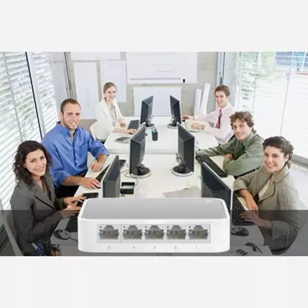 سوییچ «TL-SF1005D Ver 16.0» محصولی از برند «تی پی-لینک» (TP-LINK) است. این سوییچ دارای 5 پورت LAN است و میتواند برای گسترش شبکه و متصلکردن تعداد بیشتری از کاربران به آن مورد استفاده قرار بگیرد. پورتهای LAN بهکاررفته در TL-SF1005D Ver 16.0 از نوع 10/100 مگابیتی هستند که این سوییچ را به انتخاب مناسبی برای شبکههای خانگی تبدیل میکنند. تمام پورتهای LAN به قابلیت Auto MDI/MDIX مجهز هستند و میتوانید از هر نوع کابل مجهز به سوکت RJ45 روی آنها استفاده کنید. با استفاده از چنین سوییچی میتوانید کامپیوتر دسکتاپ و لپتاپ، کنسول بازی خانگی، ذخیرهساز NAS و دوربینهای نظارتی منزلتان را به شبکه وصل کنید. ظرفیت سوییچینگ در این محصول یک گیگابیت بر ثانیه است و پهنای باند انتقال داده در حالت استفاده از Full Duplex Mode تا 200 مگابیت بر ثانیه خواهد رسید. LED نشاندهندهی روشنبودن سوییچ، در قسمت بالای بدنه تعبیه شده است و LEDهای نشاندهندهی فعالیت هر پورت، روی همان پورت قرار گرفتهاند. برق مورد نیاز سوییچ، TL-SF1005D Ver 16.0 توسط آداپتور خارجی تامین میشود و با استفاده از Green Technology بهکاررفته درون سوییچ، میزان مصرف برق آن بسیار ناچیز است.