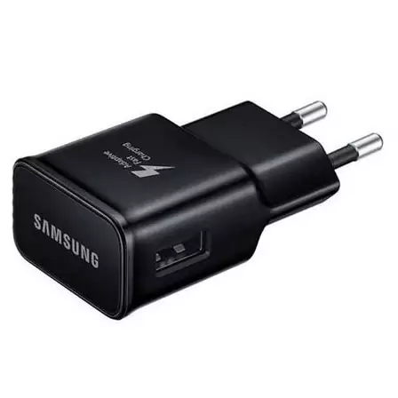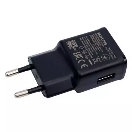شارژر اصلی Galaxy S10 دارای آداپتور دو پین با درگاه خروجی یو اس بی می باشد،