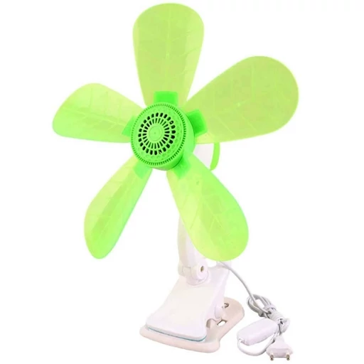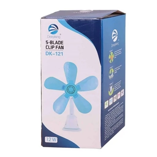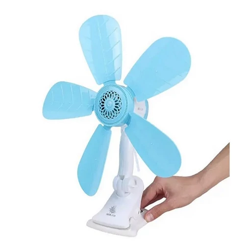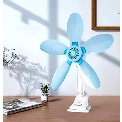 رنگ بندی: سبز و آبی قابلیت شارژ از طریق کابل برق شهری سرعت گردش فن 300 دور در دقیقه توان 12 وات ولتاژ ورودی 220 ولت فرکانس 50 هرتز جنس بدنه پلاستیک مقاوم تعداد پرهها 5 عدد گیره قابلیت اتصال به لبه میز و سایر اجسام 5 پره با سرعت 300 دور در دقیقه برای تهویه موثر گیره قابل تنظیم برای اتصال به میز و سایر سطوح کلید روشن/خاموش فیزیکی برای راحتی کاربر بدنه پلاستیکی مقاوم در برابر ضربه و فشار