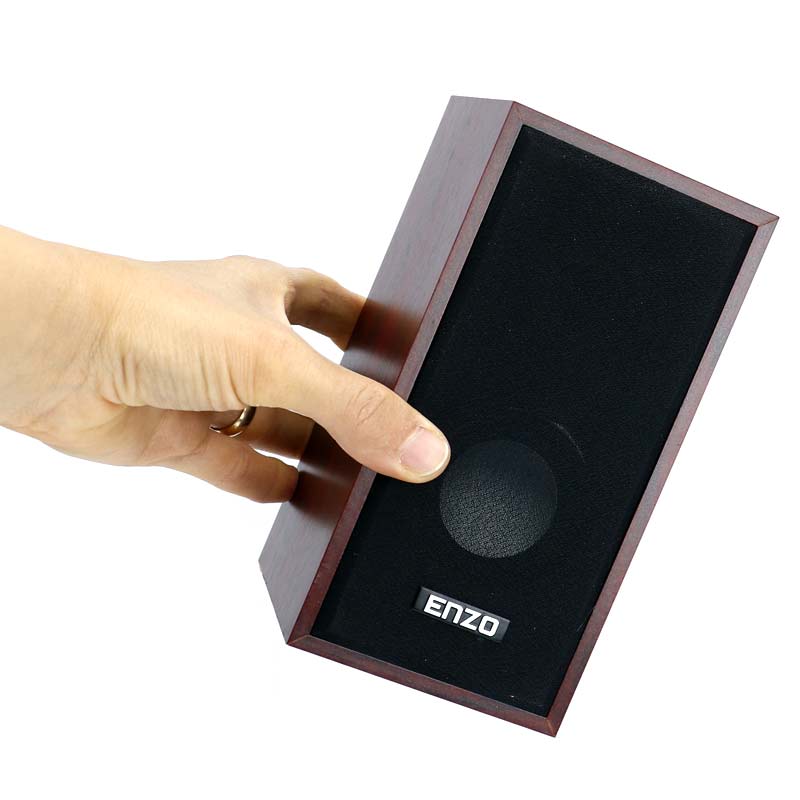 اسپیکر 2 تکه برند ENZO مدل SL-101 یک بلندگوی دو تکه باکیفیت از برند انزو میباشد که از طریق پورت USB و جک 3.5 میلیمتری به سیستم شما متصل میشود. جنس بدنه این اسپیکر از چوب باکیفیت است که بسیار مقاوم در برابر ضربه است. این اسپیکر جمعوجور بسیار مناسب برای لپتاپ است و قدرت صدای بالایی دارد که شما میتوانید از شنیدن موسیقی لذت ببرید. سبک و کموزن بودن این محصول از ویژگیهای خوب این محصول است. بر روی کابل بلندگوی SL-101 دکمهای برای کم و زیاد کردن صدا تعبیه شده است.