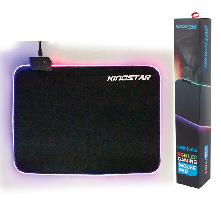 این محصول از جنس لاستیک طبیعی به همراه لبههای دوخته شده با خاصیت ضدسائیدگی و ضد لغزش هنگام استفاده گیمرها تولید شده است. ابعاد این پد ماوس 355x255x4 میلی متر با وزن 185 گرم میباشد که موجب کارایی راحتتر برای گیمرهاست. همچنین دارای نور RGB با 14حالت نورپردازی مختلف بکار رفته در نوارههای کناری پدماوس نیز موجب جلب رضایت اکثریت کاربران این محصول شده است. نحوه اتصال پدماوس KMP150G جهت شروع نورپردازی بوسیله یک کابل 1.8متر با پورت USB است. همچنین این محصول پرطرفدار دارای ولتاژ 5ولت و جریان بیش از 100 میلی آمپر نیز میباشد. از اقلام همراه این کالا میتوان به کابل micro-USB و دفترچه راهنما اشاره کرد. از دیگر مزایای این پدماوس کینگ استار (kingstar)، جابجایی راحت آن بعلت قابلیت تا شدن (رول شدن) به همراه طراحی ضد آب میباشد.