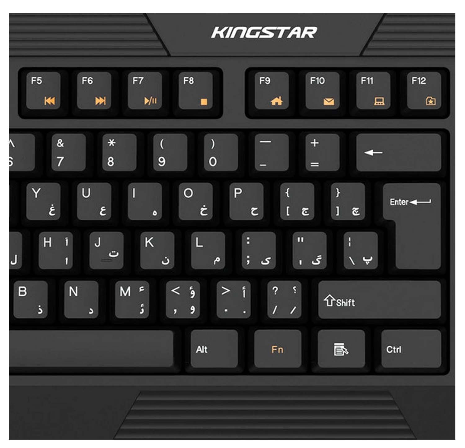 کیبورد «KB72» محصولی از شرکت «کینگستار» است که به صورت باسیم و از طریق درگاه USB به کامپیوتر متصل میشود. این کیبورد دارای 104 کلید برای انجام فعالیتهای کامپیوتری است؛ همچنین کیبورد KB72 دارای 14 کلید میانبر برای انجام سریعتر کارهاست که در قسمت بالایی کیبورد قرار گرفتهاند. کیبورد کینگستار مدل KB72 برای استفادههای روزمره و اداری میتواند گزینهی مناسبی باشد. شرکت کینگستار این محصول را برای کاربران فارسیزبان طراحی کرده و به همین منظور کلیدهای آن را به برچسب چاپی فارسی تجهیز کرده است. کلیدهای این کیبورد در فاصلهی مناسبی از هم قرار گرفتهاند که این ویژگی باعث بیشترشدن سرعت تایپ و راحتی کاربر هنگام استفاده میشود. اگر قصد تهیهی یک کیبورد برای استفادههای اداری و خانگی را دارید، KB72 میتواند انتخاب مناسبی برای شما باشد.